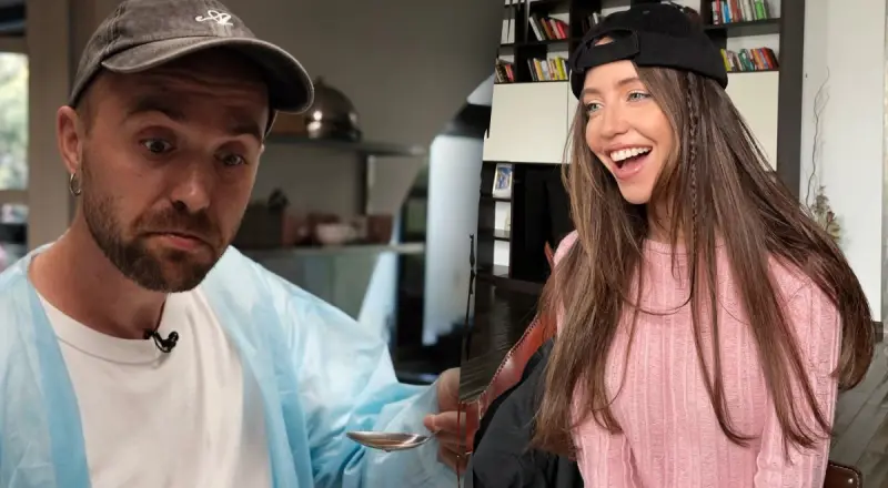 Під час зйомок артистка зробила смішне фото з блогером Мішею Лебігою. Знімок з'явився на його сторінці в Instagram.