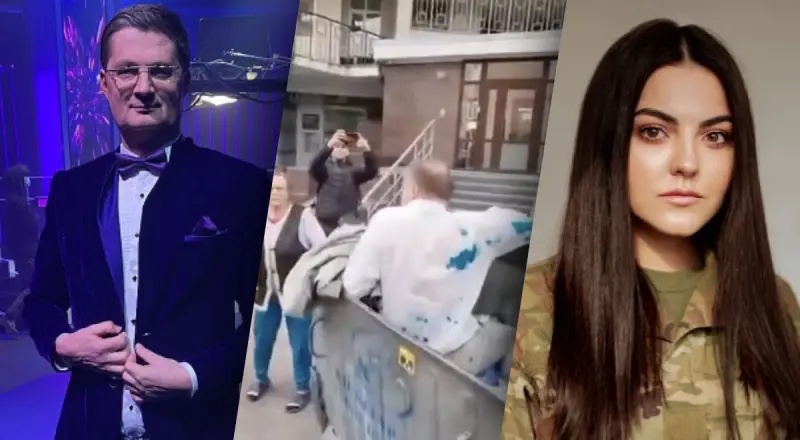 У вівторок, 13 червня, в Києві активісти напали на політичного аналітика, колишнього народного депутата України Тараса Чорновіла. Його облили зеленкою і сечею, а потім кинули в сміттєвий бак. Чорновіл спробував чинити опір, але у нього нічого не виходить.