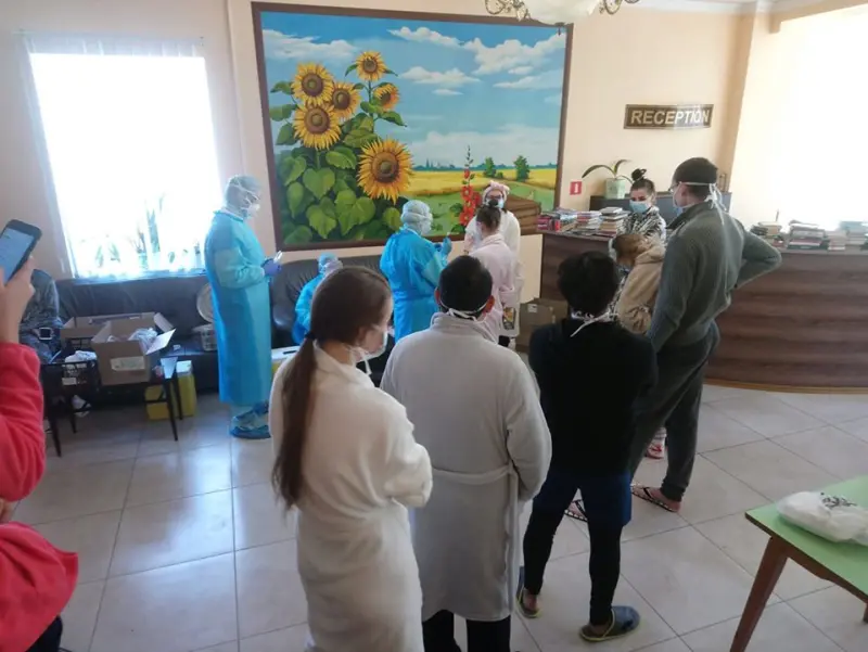 Евакуйовані з Уханя українці та іноземці готуються до повернення додому з медичного центру в Нових Санжарах, де вони знаходяться на період обсервації. Епідеміологи повторно взяли у всіх аналізи.