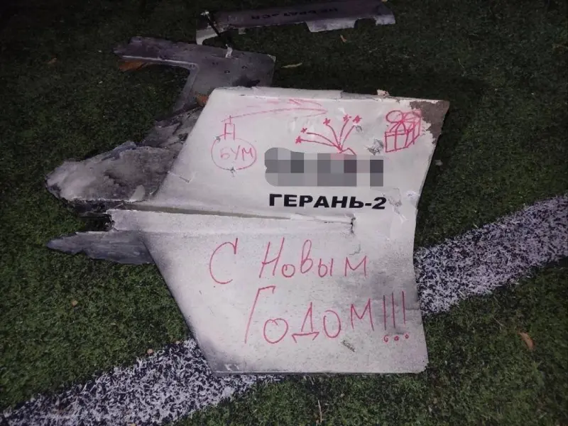 Під ударом опинилися в тому числі Київ і область. Один з дронів впав на спортивному майданчику, де грають діти. Окупанти цинічно написали на безпілотнику "З Новим роком".