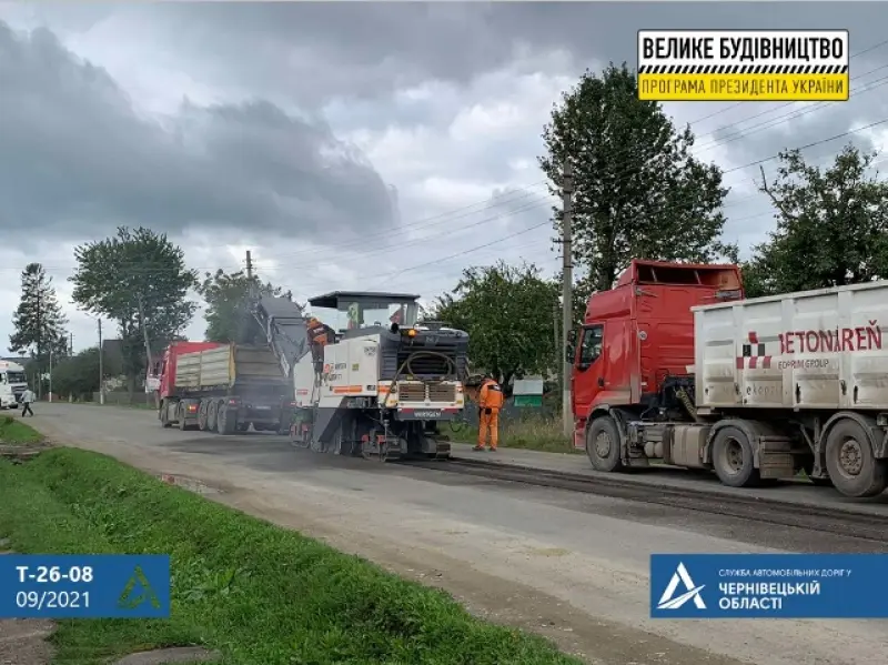 На Буковині стартував ремонт автомобільної дороги Т-26-08 “Сторожинець – КПП “Красноїльськ”, яка веде до кордону з Румунією. 29 кілометрів шляху відновлять вперше за 30 років у рамках програми президента Володимира Зеленського “Велике будівництво”, повідомляє Чернівецька ОДА.