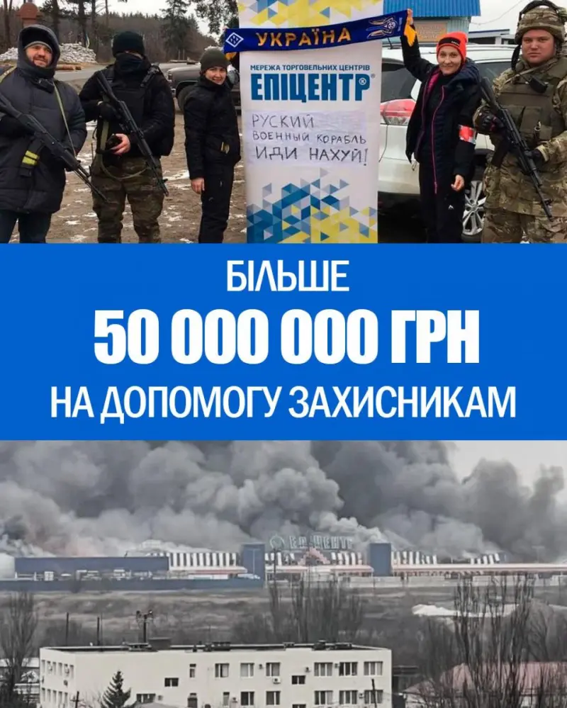 В перші дні повномасштабного вторгення російської армії компанія Епіцентр працює на потреби захисників та відділень тероборони.