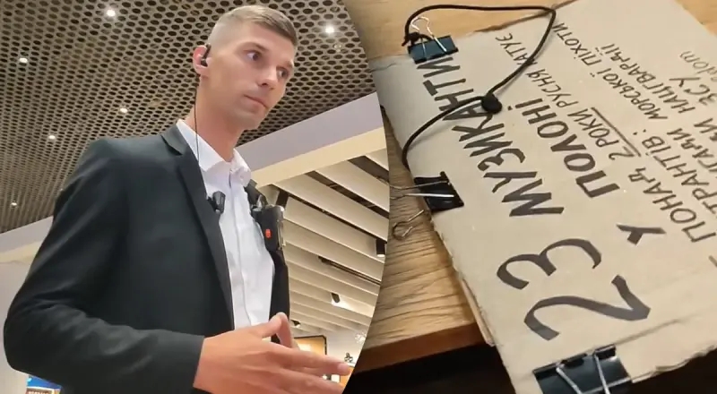 Одна з жінок, яку не пропустив охоронець, розповіла, що представнику служби безпеки не сподобалися плакати, адже це "не формат ЦУМу". Пізніше на відео, яке поширилося в соцмережах, видно, як той самий охоронець спілкується з людьми, які вже сидять біля фудкорту.