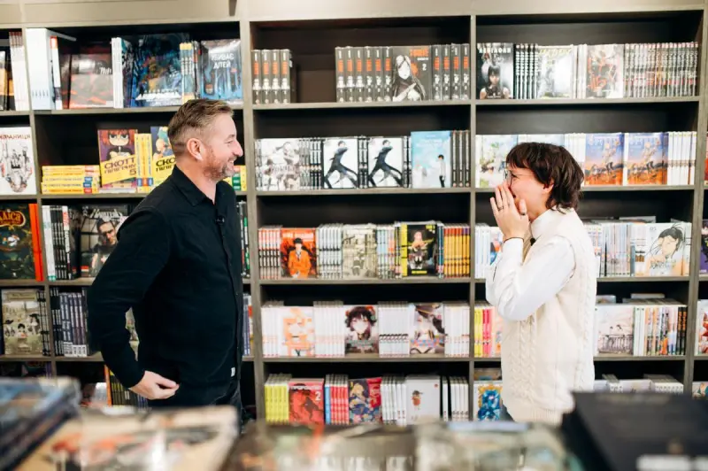 На згадку про омріяну зустріч із кумиром дівчата отримали символічні подарунки від команди 1+1 media та підписані автором книжки від «КнигоЛенд».