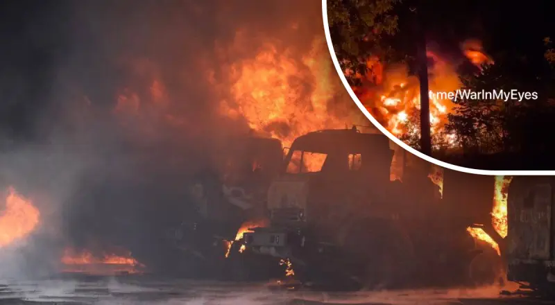 Повідомляється, що потужна пожежа сталася на Червоногвардійській нафтобазі. Там нібито стався розлив нафтопродуктів. Також є інформація про те, що в житловому районі селище Крупської частково відсутнє електропостачання.