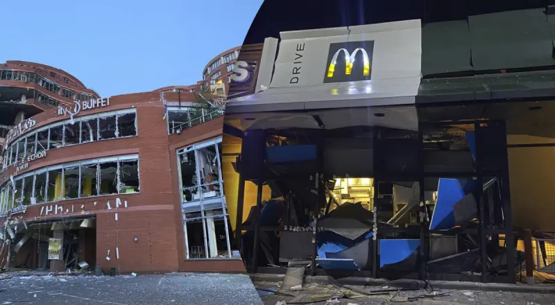 Повідомляється, що сталася руйнація будівлі бізнес-центру та загоряння автомобіля на парковці.
