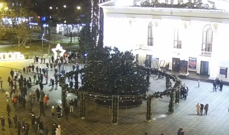 У центрі Маріуполя Донецької області на Театральній площі впала головна міська ялинка.