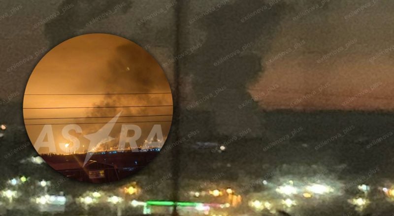 Як повідомляє OSINT-аналітик Astra, на кадри, опубліковані в Мережі, також потрапив один з осередків загоряння в районі нафтохімічного заводу. Кадри знято приблизно з 3,5 кілометрів від вогнища.