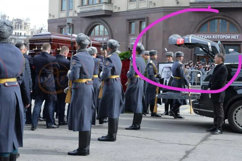 Труну лідера російської партії ЛДПР Володимира Жириновського пронесли з Будинку Союзів до ритуальної машини на тлі вивіски ресторану "Країна, якої немає". Це реальний ресторан, який знаходиться вулицею Охотний ряд у Москві.