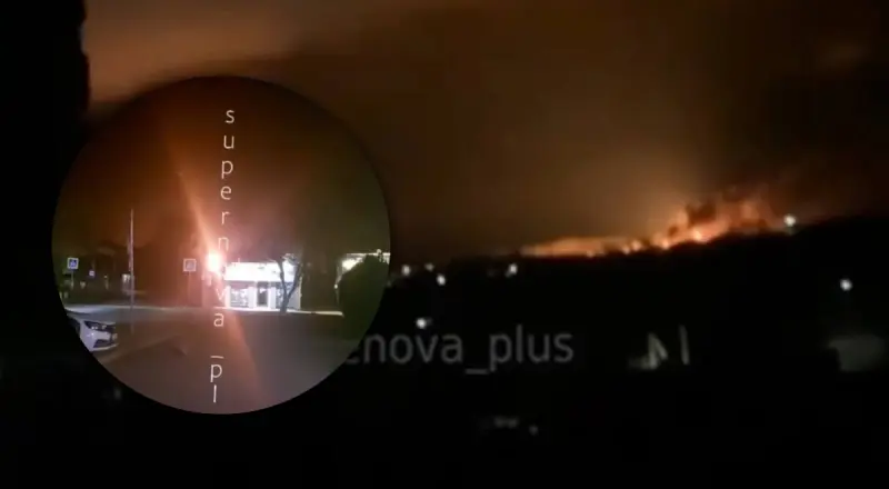 Місцеві зазначали, що всього там чули від 5 до 8 вибухів. У мережу вже опублікували відео з наслідками атаки, на них видно полум’я та стовп диму.
