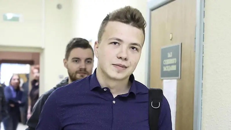 Колишній редактор опозиційного телеграм-каналу NEXTA Роман Протасевич, затриманий у Мінську, прийшов на пресконференцію, організовану білоруськими силовиками.