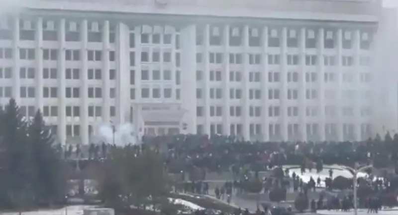 У колишній столиці Казахстану Алмати вдень 5 січня протестувальники прорвали кордони поліції і захопили будівлю акімату (мерії) міста.Вони штурмували будівлю з гумовими кийками і щитами в руках. Після цього у приміщенні мерії спалахнула пожежа.
