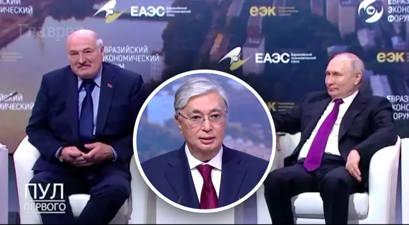 Диктатор Володимир Путін і Олександр Лукашенко, сидячи в залі, не зовсім прийняли слова Токаєва.