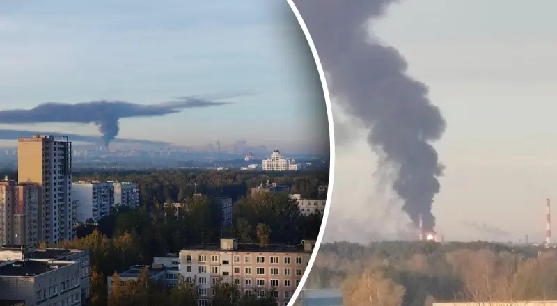 Росіяни, які проживають у місті, заявили, що в районі Московського проспекту в небі піднявся стовп густого чорного диму, а на території НПЗ видно здалеку займання.
