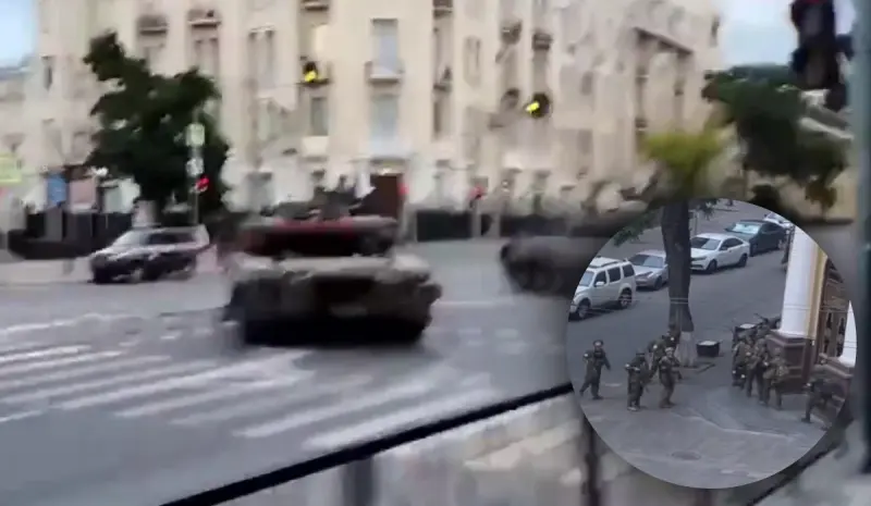 В Інтернеті з'явилося відразу кілька відеороликів з військовими колонами, які заїхали в центр Ростова-на-Дону і оточили місцеву будівлю Міноборони РФ.