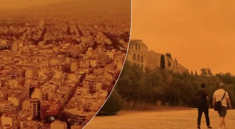 Як пише Aljazeera, небо над південною Грецією набуло помаранчевого відтінку. Хмари пилу накрили Акрополь та інші пам'ятки Афін.